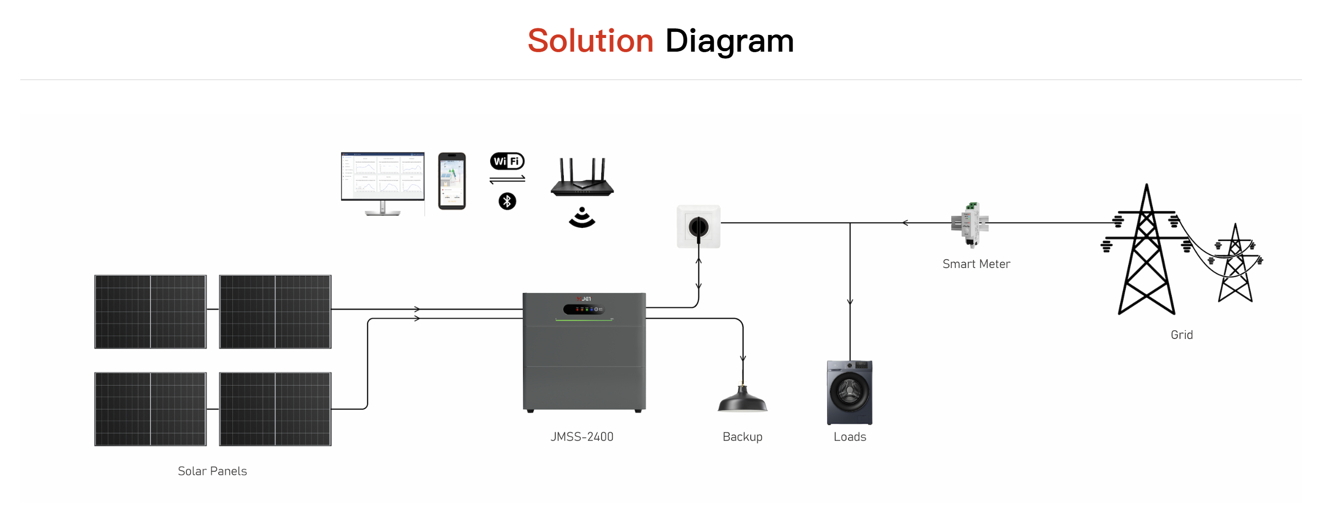Der JMSS-2400 kombiniert innovative Technologie, höchste Sicherheit und langlebige Qualität zu einer kosteneffektiven und zuverlässigen Lösung für private und gewerbliche Anwendungen. Mit seiner maximalen Flexibilität, fortschrittlichen Sicherheitsfunktionen und langfristiger Zuverlässigkeit bietet er maximale Effizienz, Nachhaltigkeit und Komfort. Er ist die ideale Wahl für alle, die saubere Energie smarter, sicherer und nachhaltiger nutzen möchten.